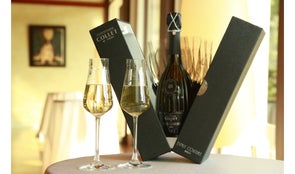シャンパーニュ コレのロゴ入り限定 バカラペアグラスとシャンパーニュ コレのトップキュヴェ「エスプリ クチュール(おしゃれなギフトボックス入り 1本 50000円(税別)相当)」3本、第二回日本コレ賞授賞式およびレセプションパーティー券 1枚(当日お土産付き)のMakuake限定スペシャルセットとなります。
