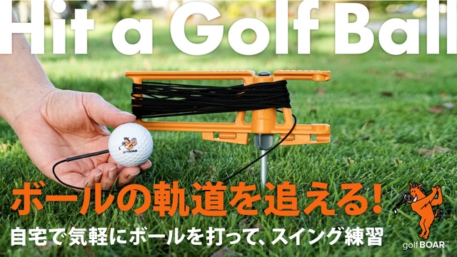 「golfBOAR」は、ゴルフ練習場に行くかずにすぐ、ボールを打ってスイング練習ができます。ニュージーランドで設計された「golfBOAR」は、組み立て・セッティングもとてもシンプルで簡単。スリムなロープにボールが一体化した構造はとても丈夫で、力いっぱいスイングできます。