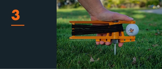 注:毎回打つ前に、golfBOARがしっかりと地面に刺さっていることを確認してください。何度も打つと、杭が緩む場合があります。