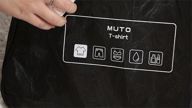 エコトラベルバッグセット「MUTO」は素材にもこだわり、防水で紙のような軽くて丈夫な「タイベック」を採用しました。