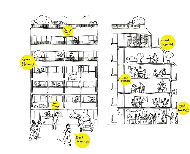 でも、ただ単に仕事場を共有するのではありません。私たちが考えるGood Morning Buildingは、多様なアクティビティやアイデアが交鎖する、クリエイティブワーカーのためのシェアオフィスです。