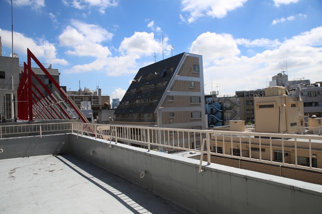 屋上は自由に出入りができる休憩スペース(写真はリノベ工事前のものです)。ここがなかなか、展望が良いのです。都心には珍しく、空も開けたスペースなので、アイデアに詰まったらここで物思いに耽るのもいいかも!