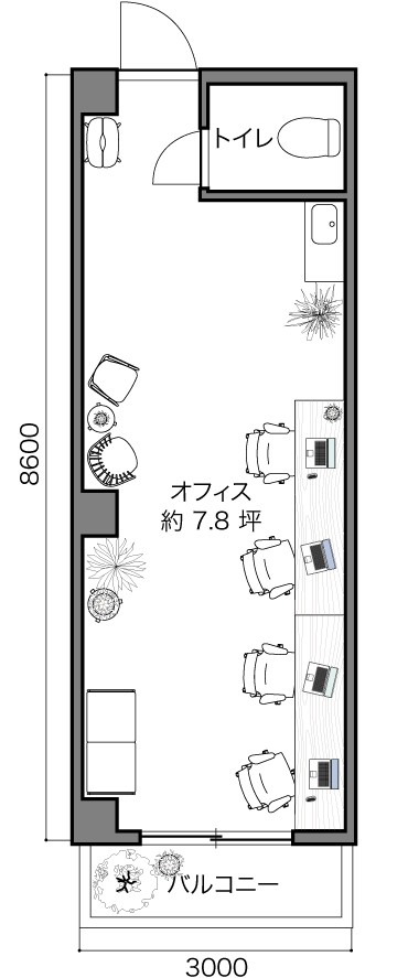 ■オフィス区画303、401、402号室(各8坪 )のプランになります。