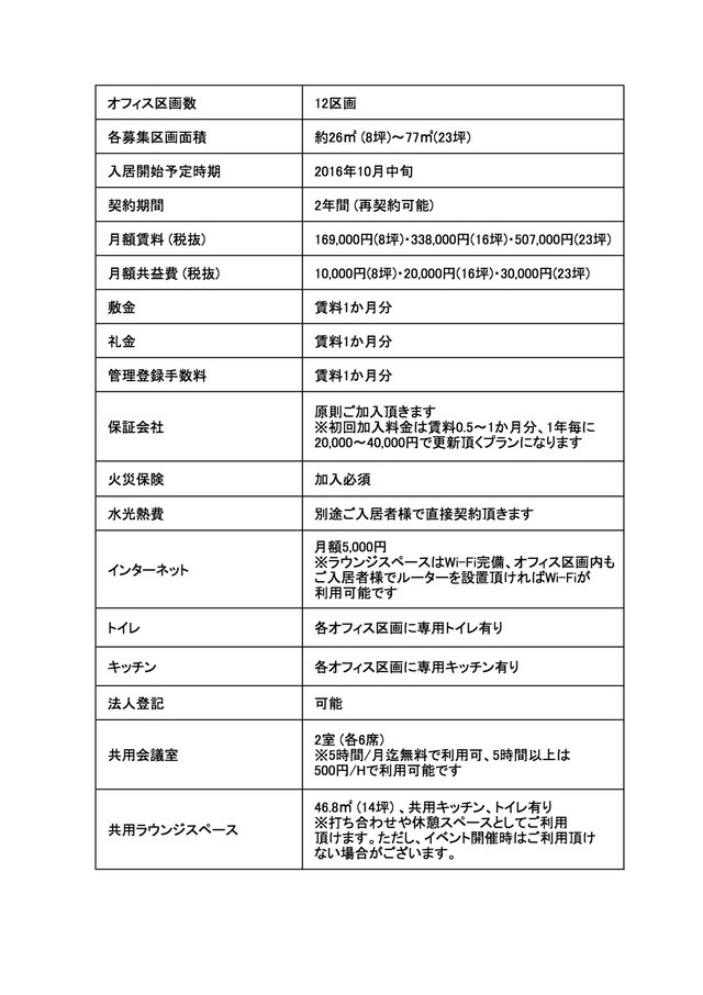 ■11月末に開催予定のレセプションパーティーに無料でご招待致します。運営関係者やビルにご入居される方々と交流出来る、貴重な機会です。パーティーでは、軽食やライブ演奏などを楽しんで頂く予定です。