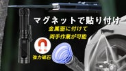 底部の強力マグネットを金属面に貼り付ければ、簡単に両手を使った作業が可能になります。車や自転車の急な故障対応や捜し物に重宝します。