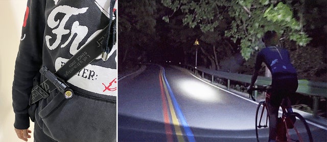ヘッドバンドを使うと自転車のハンドル操作に関係なく、常に目線の先を照らすことができるので、ナイトサイクリングに最適です。バンドはアジャスターで調整可能、しっかり固定してご利用いただけます。