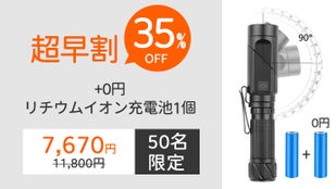 【超早割】35%OFF 強力マルチ懐中電灯+おまけリチウムイオン充電池 ×1個