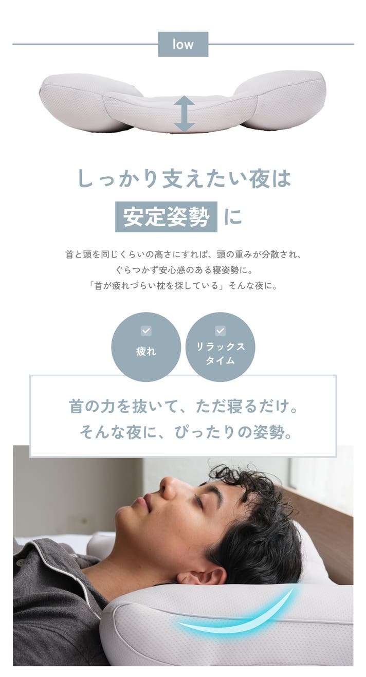- 【2WAY機能】首の状態に合わせて枕の前後を使い分けることで、最適なサポートが得られる