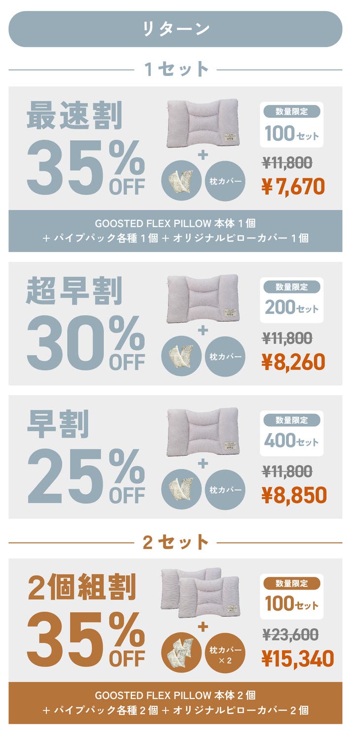 【早割り】25%OFF GOOSTED FLEX PILLOW 限定400セット