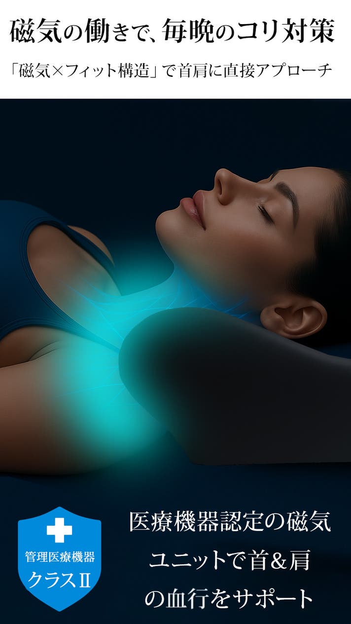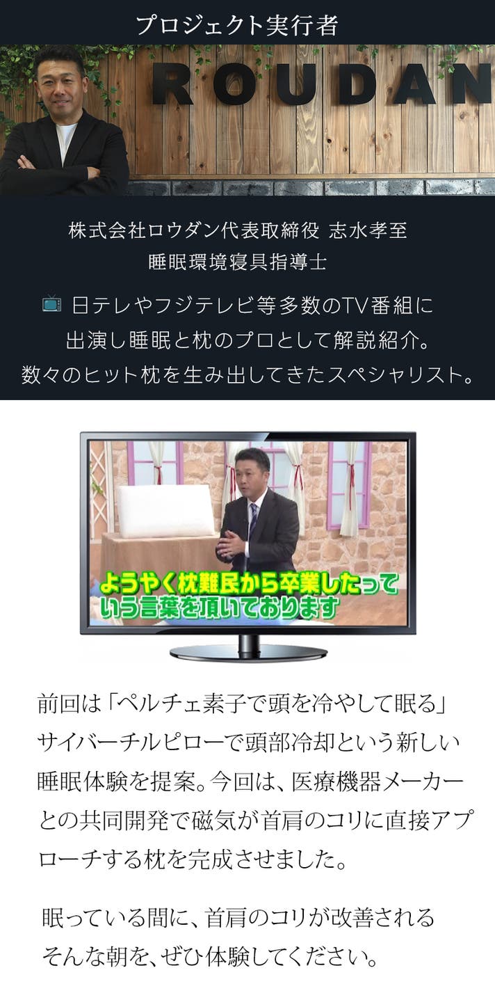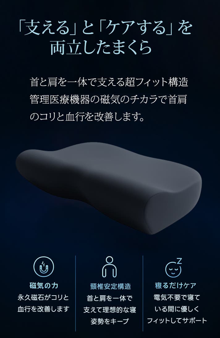 「Makuake(マクアケ)」は、実行者の想いを応援購入によって実現するアタラシイものやサービスのプラットフォームです。このページは、 プロダクトカテゴリの 「管理医療機器|寝ながら首と肩を本格ケア。辛いコリと血行を本気で改善する磁気枕」プロジェクト詳細ページです。