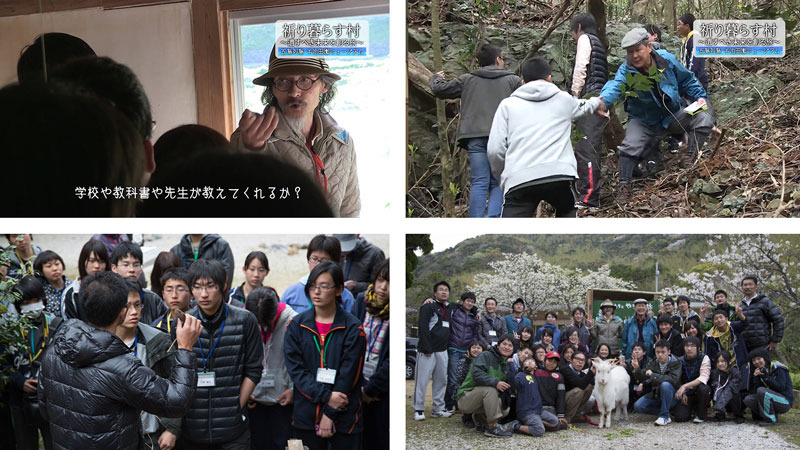 「風景が君たちの感性を育ててきたんだ!」半泊田園ミュージアムプロデューサーの濱口孝さんは子供たちに熱く語りかけます。暮らしの環境が一人一人の個性を生み文化を育てると言うのです。半泊集落に移り住み8年。濱口さんは、当初荒れ放題だった土地を切り開き、循環型のバイオマス農業を開発、小学校の廃校をリフォームし、宿泊施設も備えた『自然と人間の共生を学ぶ体験型の美術館(田園ミュージアム)』に変えました。半泊集落全体がまさに自然の美術館であり博物館。濱口さんは、半泊集落の自然循環の仕組みと、そこに人間が暮らすことで支え合う、自然と人間の共生のカタチを伝えるワークショップを続けてきました。その結果、一時は3世帯5人だけの超限界集落が、いまでは5世帯全国から年間1000名が訪れる『田園ミュージアム』として村に賑わいが戻ってきたのです。