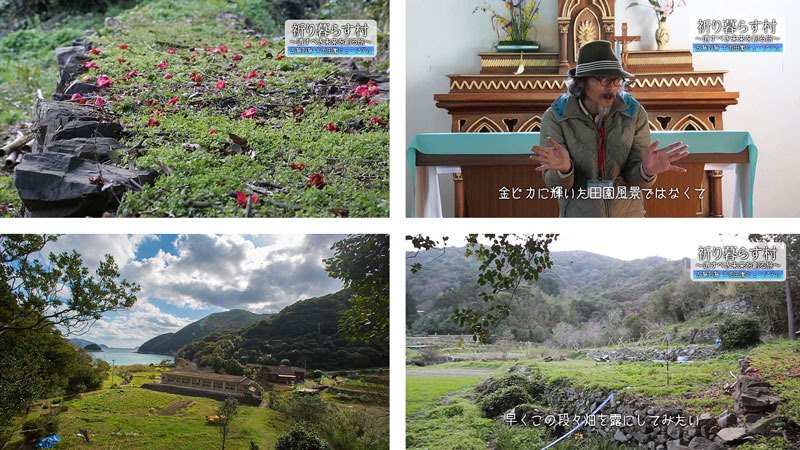 長崎港から船で約2時間。五島列島の北端に位置する半泊集落は、江戸時代に迫害を逃れ、海を渡ってきた潜伏キリシタンの人々が、信仰を守るために命をかけて切り開いた土地です。500m四方に、山・川・海が循環する自然に寄り添いながら、かつては多くの家族が日本風の教会を中心に祈り暮らしていました。しかし近年の都市化と少子高齢化により住民は激減し、いまでは住居跡が石垣として残り、それも竹薮の浸食により失われつつあります。