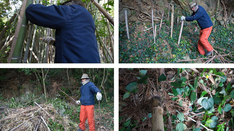 総計約1万本は優に超える竹の数。これを一本残らず根こそぎ除去するのは至難の業ですが、これまでの経験から当地オリジナルの竹薮整備法を開発しました。竹は生命力が非常に強く、根元近くで切っても、地中に根を伸ばし新たな芽を出しつづける為に伐採は困難です。しかし、竹を高さ1m30cmのところで寸断すると、竹はまだ枝が伸びていると認識し、栄養を上の枝に運び続けます。やがて、根に蓄えた栄養は奪われ枯れてしまい、根こそぎ手で引っこ抜くことができるのです。ただし、一本づつノコギリで切断するのは難しいので、今回クラウドファンディングで集めた資金で電気ノコギリを購入し、伐開作業の効率化を進めます。ご支援者の皆様へ向けて、作業状況を順次レポートいたしますので、是非楽しみにしていてください!
