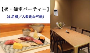 「お誕生日会」や「グループでのお食事会」のために、通常はご提供していない、夜用のパーティーコースをご用意しました。ワインにも日本酒にも合う「料理」と「江戸前 鮨」で構成されたコースに、店主がペアリングした日本酒orワインが1杯付いてきます。(ビール・ソフトドリンクに変更可)