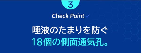 空気や唾液の流れをスムーズにするため、底部ではなく側面に18個の通気孔を配置しました。
