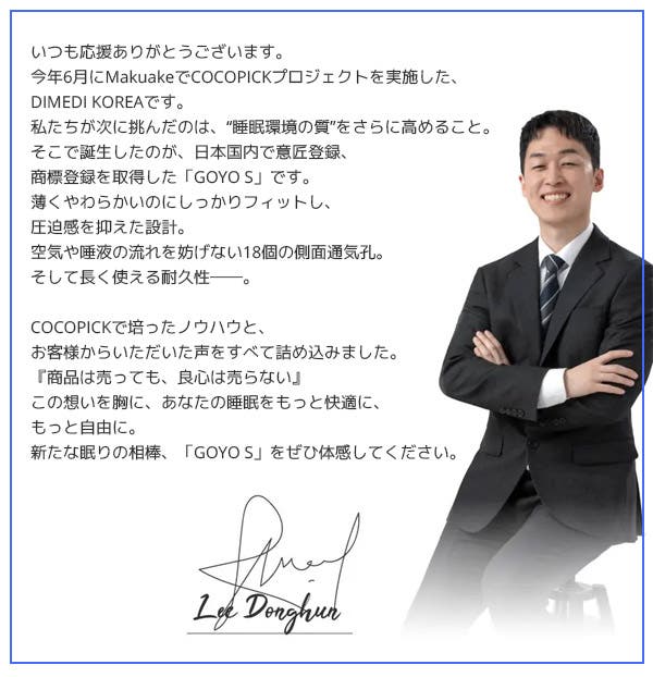 これまで『COCOPICK』で培ったノウハウを活かし、さらに快適で自然な装着感を目指しました。日本市場においても多くの方に価値を感じていただけると確信しています。ご支援のほど、宜しくお願いいたします。