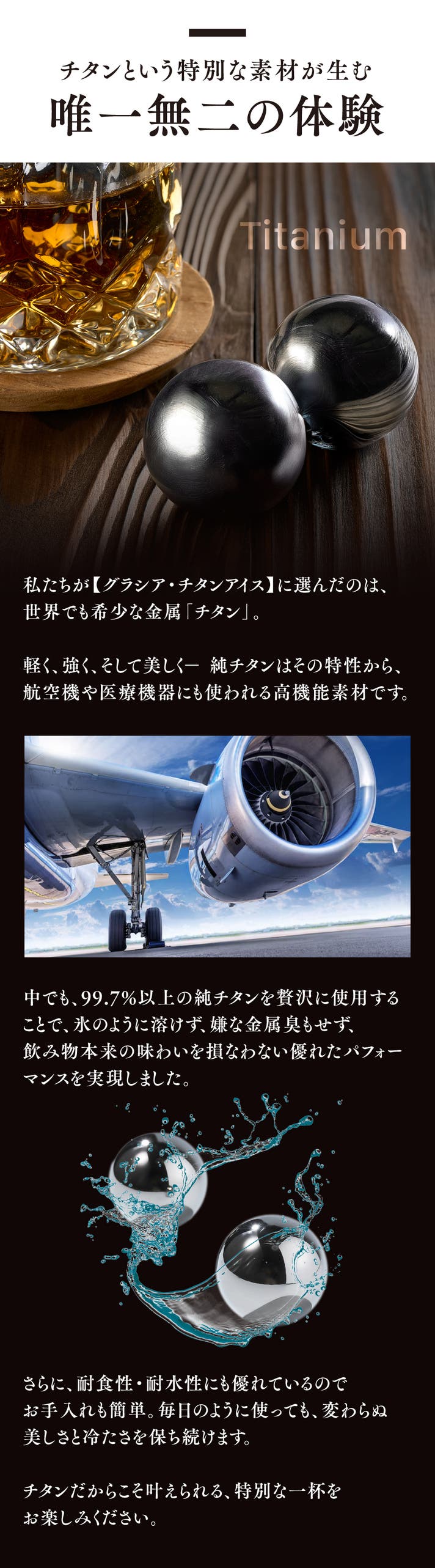 - グラスの中で反射する艶やかなチタンの輝きが、飲み物を美しく演出。目でも楽しむ大人の一杯に。