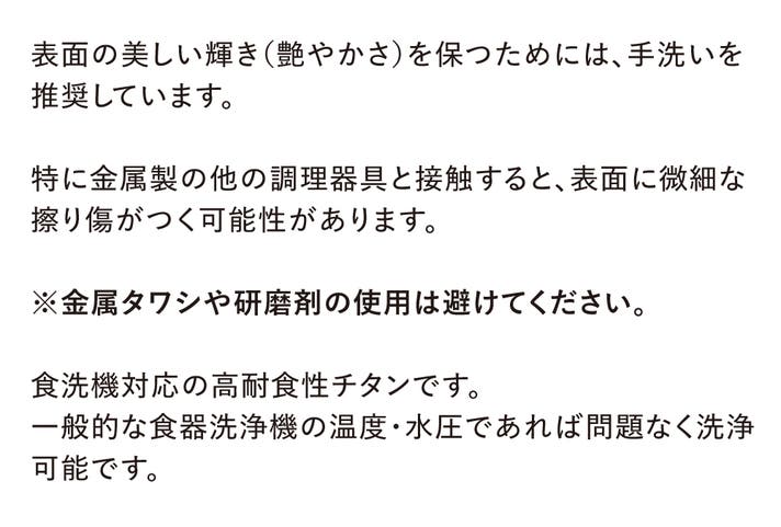 - 99、7%超の純チタン製。軽く丈夫で錆びにくく金属臭が少ない。冷凍して洗って繰り返し使える
