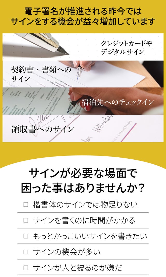 唯一無二のサインは、契約書等のサインとしての役割はもちろん、偽造等を防止する上でも、重要な象徴となります。