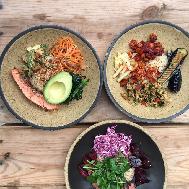 肉・魚・豆類の良質なたんぱく質と雑穀やたっぷりの野菜をバランスよく食べられる、おいしくヘルスコンシャスなグレインボウルは忙しいワーカーのために、すべてお持ち帰りが可能です。