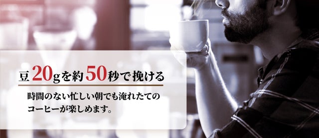 一定の速度で豆を挽くので挽き方にムラができにくく、力の小さい女性やお子様でも簡単に豆を挽けます。