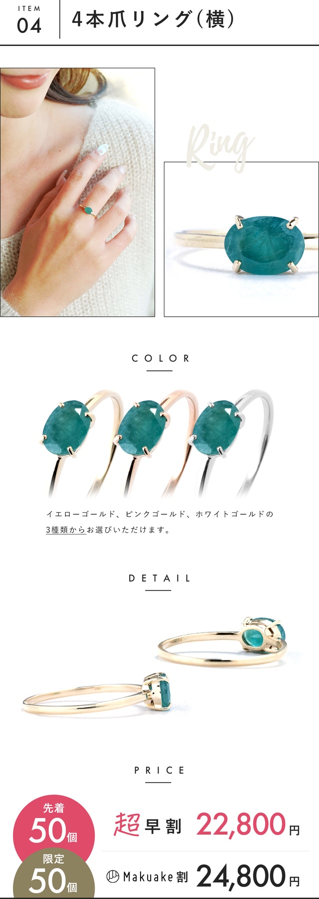 【Makuake割】グランディディエライト 4本爪リング(横) r2