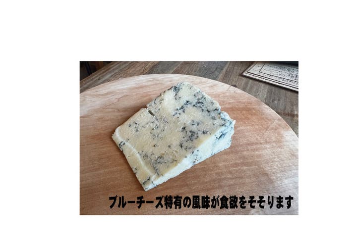 ●グラスフェッドミルクの特徴のわずかに香る、草の香りとブルーチーズ特有の刺激のある味わい、食感、程よい塩味が食欲を引き立てます。