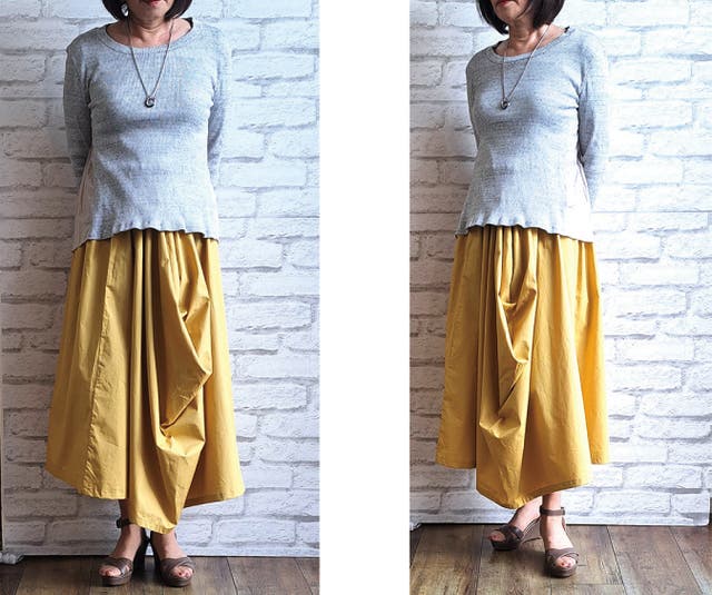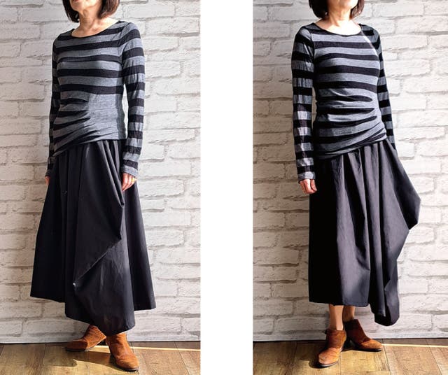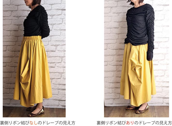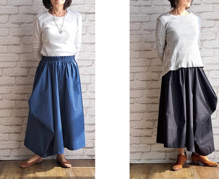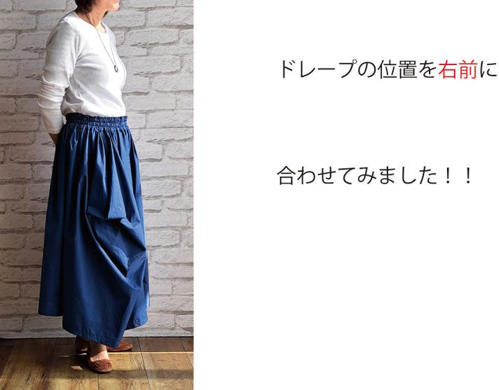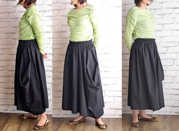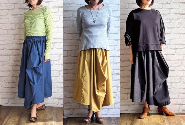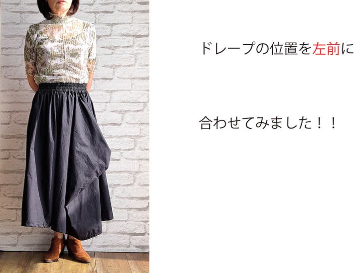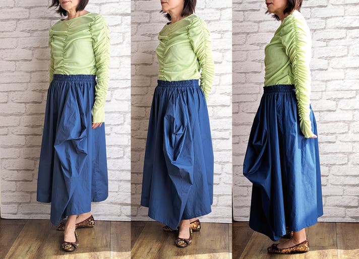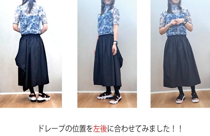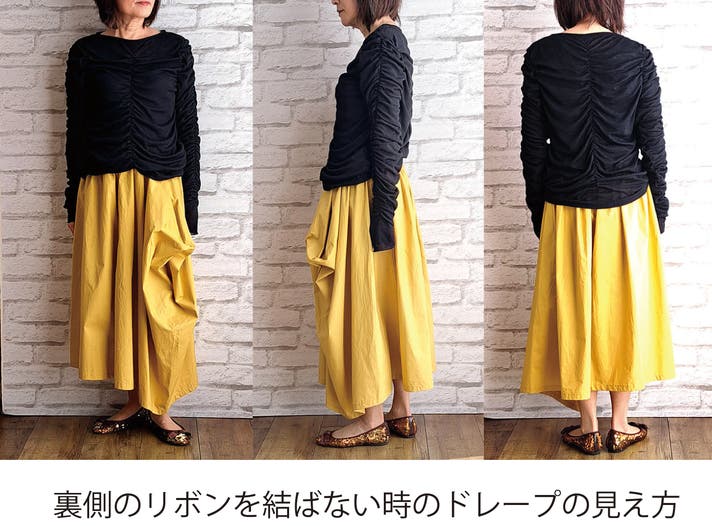 - 新しい感覚の不思議なドレープで作るシルエットがかわいいウエストフリーのスカート!!
