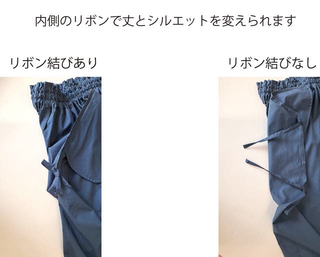 ☆裏側についているリボンを結ぶとシルエットが変えられます!