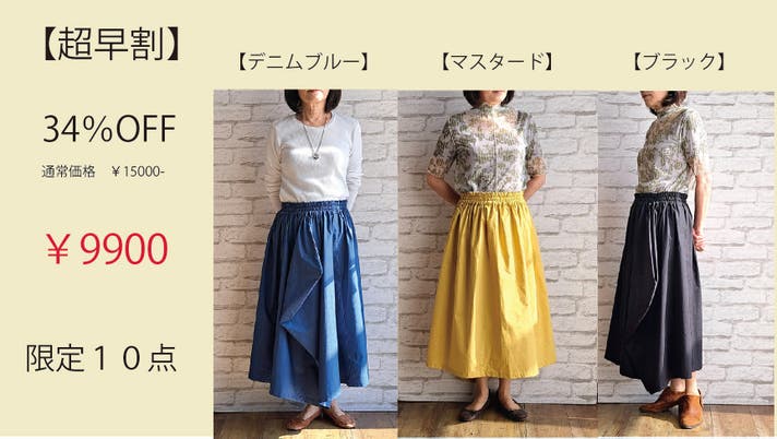 ☆アシメトリーのスカートをいち早く応援購入いただく方が、断然にお得です。