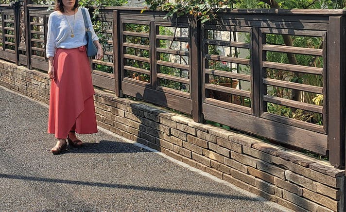 ☆合わせるトップス次第でカジュアルにもエレガントにもなれる便利なスカートです。