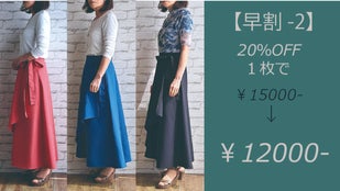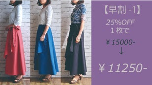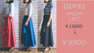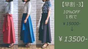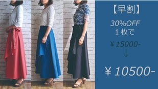 「ウエストフリーサイズでキレイ目シルエットフレアーラップスカート」をいち早く応援してくださった方に「超早割」「早割」枠を設けました!