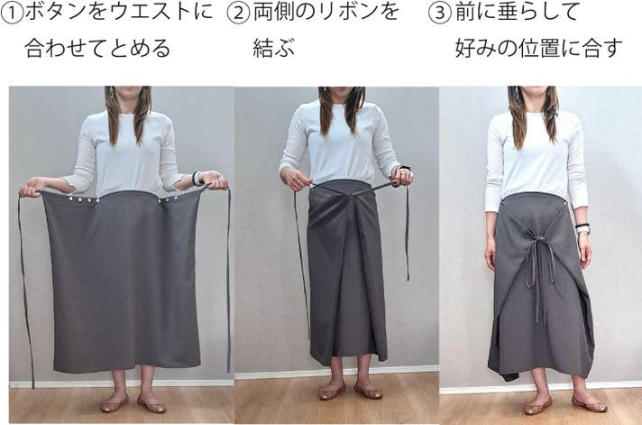 - 落ち感でキレイなシルエット!リボンのアレンジで3WAYスカートでお気に入りのオシャレを!