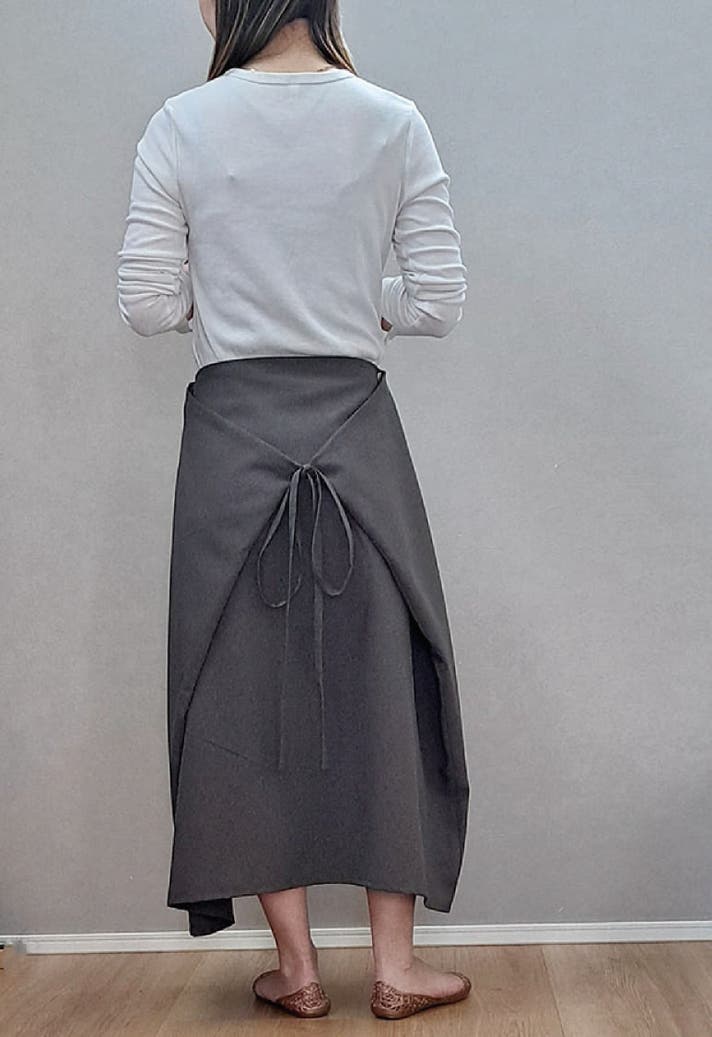 このスカートは、あなたのスタイルを自由自在に変化させることができる魔法の一枚です。ウエスト部分には8個のボタンが配されており、自分にぴったりのサイズに調整可能。