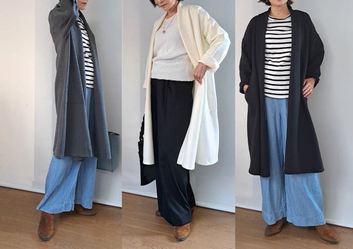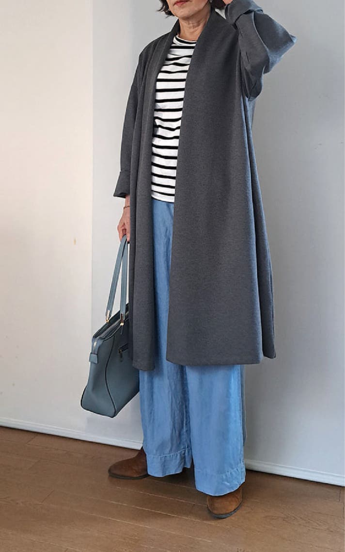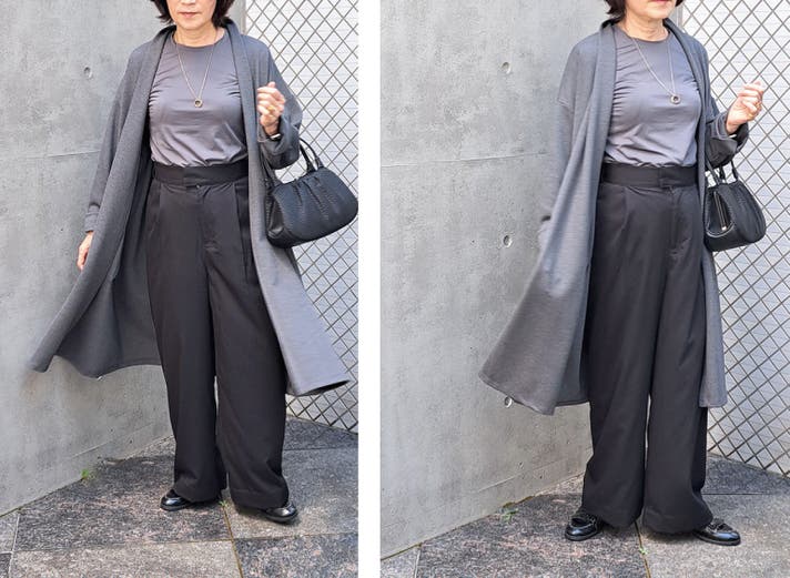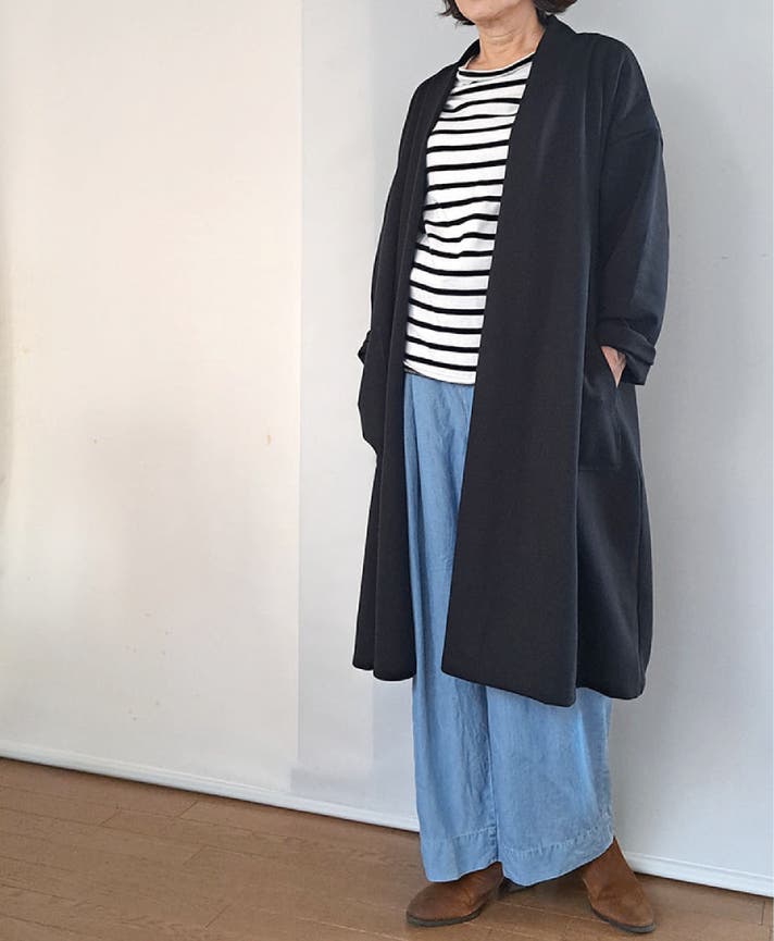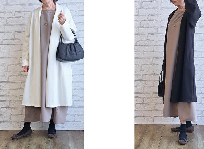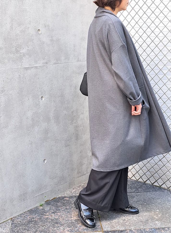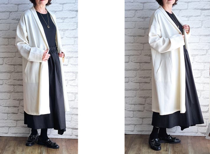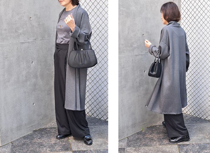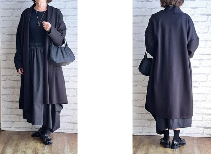 オフィスでの羽織としても、外出時にさらっと羽織るだけで、洗練された大人の女性らしさを演出します。