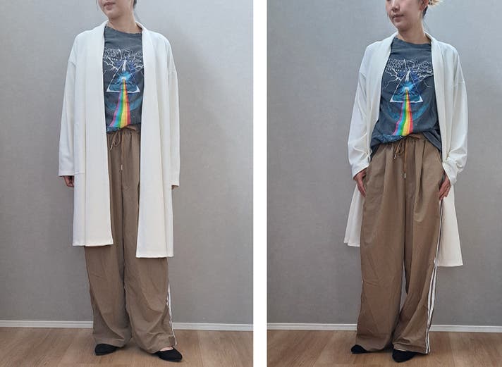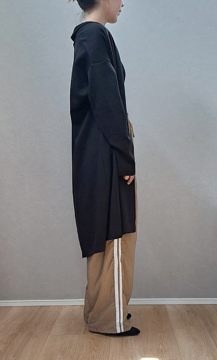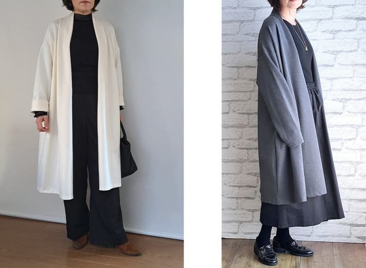 衿から流れるようなシルエットが、軽やかでエレガントな印象を与え、どんなスタイルにもマッチします。