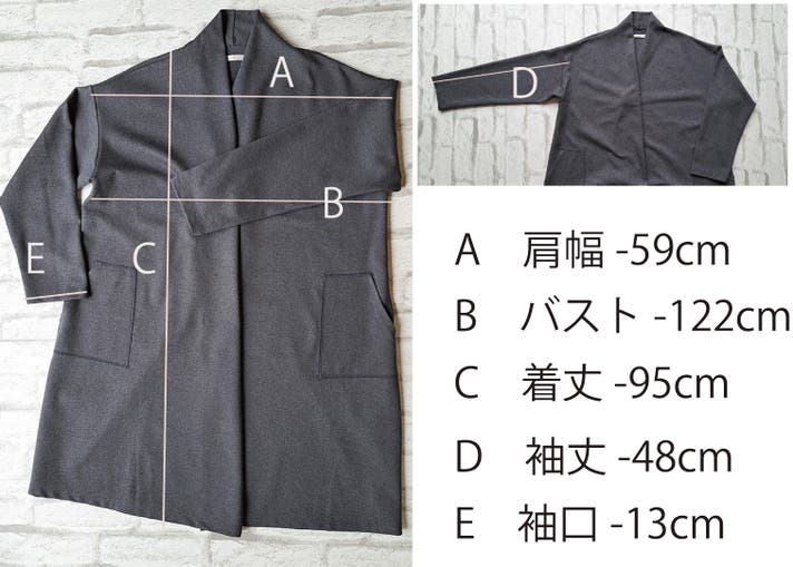 着丈-95cm バスト-122cm 肩幅-59cm 袖丈-48cm