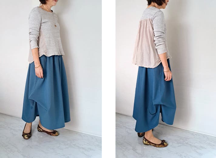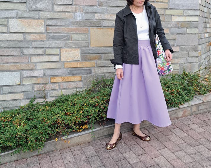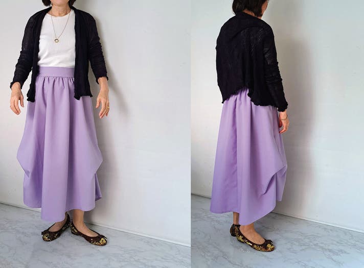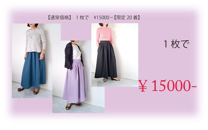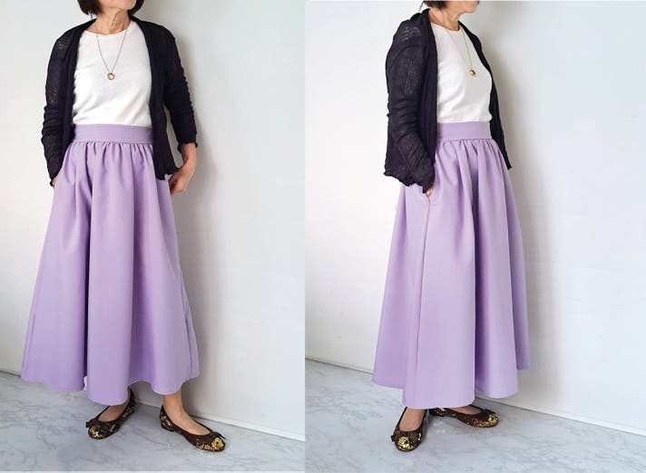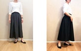 ☆今回のギャザーフレアースカートはカジュアルにもエレガントにも活躍のスカートです。