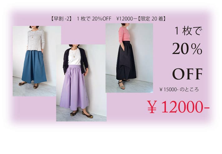 【早割-2】1枚で20%OFF ¥12000-【限定20点】