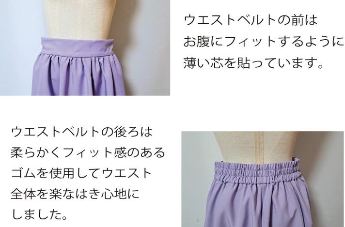 ☆ウエストの前はお腹周りがスッキリ見えるように後ろのみゴムを入れ