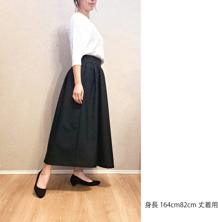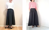 - ほどよく春風でゆれるボリュームを楽しめ春から秋まで活躍のギャザーフレアースカート!