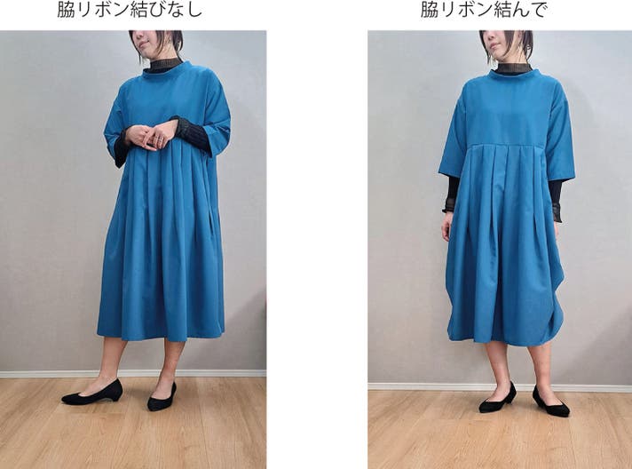 ☆スカートの裏側についたリボンでシルエットの変化を楽しめます!