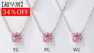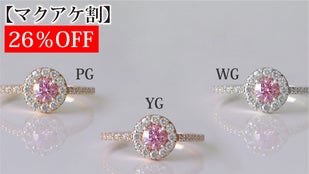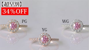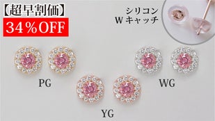 - 珍しいピンク色のモアサナイトを厳選、ダイヤモンドの約10分の1のお値段で最高級のきらめき