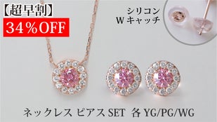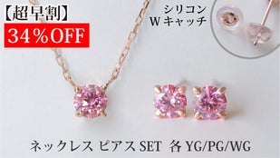 【超早割】34%OFF K10 ピンクモアサナイト ネックレス ピアス2点セット