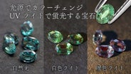 光源の影響で青緑から赤紫に変幻する特徴に加えて、クロムの影響による蛍光する特徴も併せ持っています