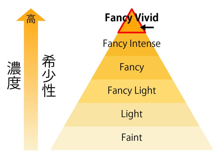 特に「Fancy Vivid」のグレードがつくとその希少性から、将来的な投資価値・資産価値にも注目されています