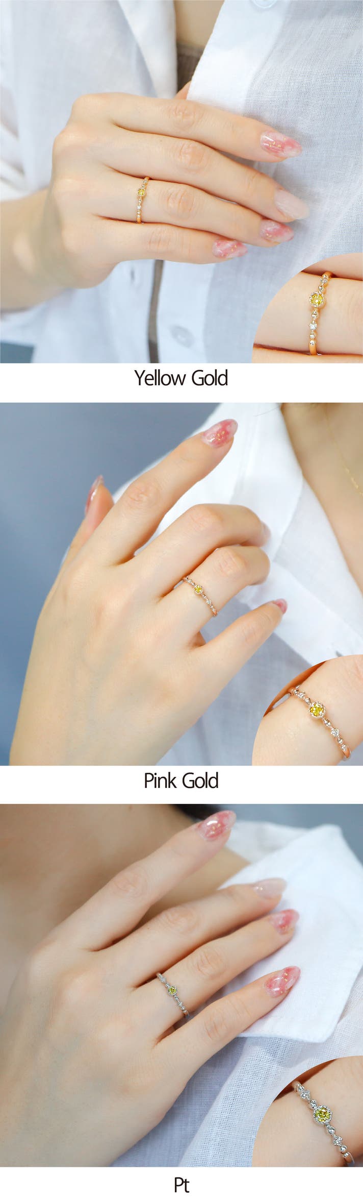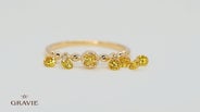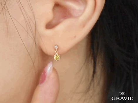 上部にホワイトダイヤを配置しメインのイエローダイヤが揺れてさらに煌めきが引き立つように設計