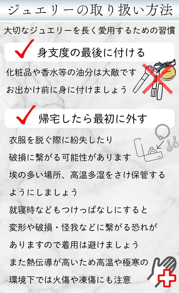 ●ジュエリーは一つ一つ繊細に作られているため着用の際はご注意ください。