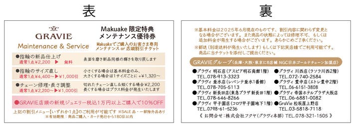 - 保証書メンテナンス券付、関西関東に8店舗、安心のフォロー体制で人生に寄り添うジュエリーをお届け