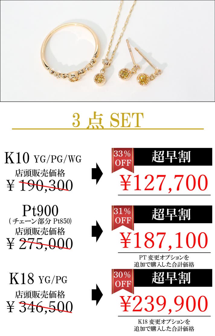 【超早割】K10 イエロー ダイヤモンド 3点セット